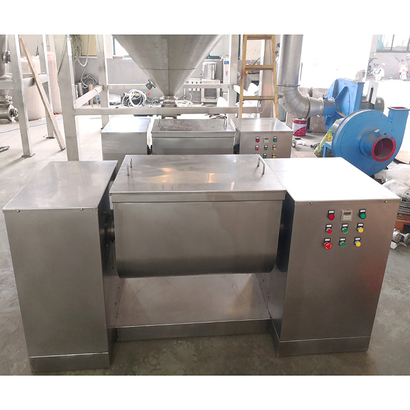 This machine is made entirely of stainless steel. The small gap between the impeller and the cylinder ensures thorough mixing without dead zones. Sealing devices at both ends of the stirring shaft prevent material leakage. The bearings are externally mounted, effectively preventing bearing burnout and material contamination caused by powder or liquid entering the bearings. Widely applicable to the pharmaceutical, chemical, and food industries, it complies with national GMP standards.
